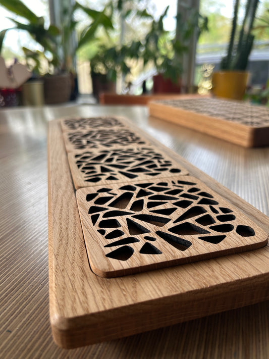 Our individually designed and handmade solid wood coasters perfectly blend beauty with functional design.